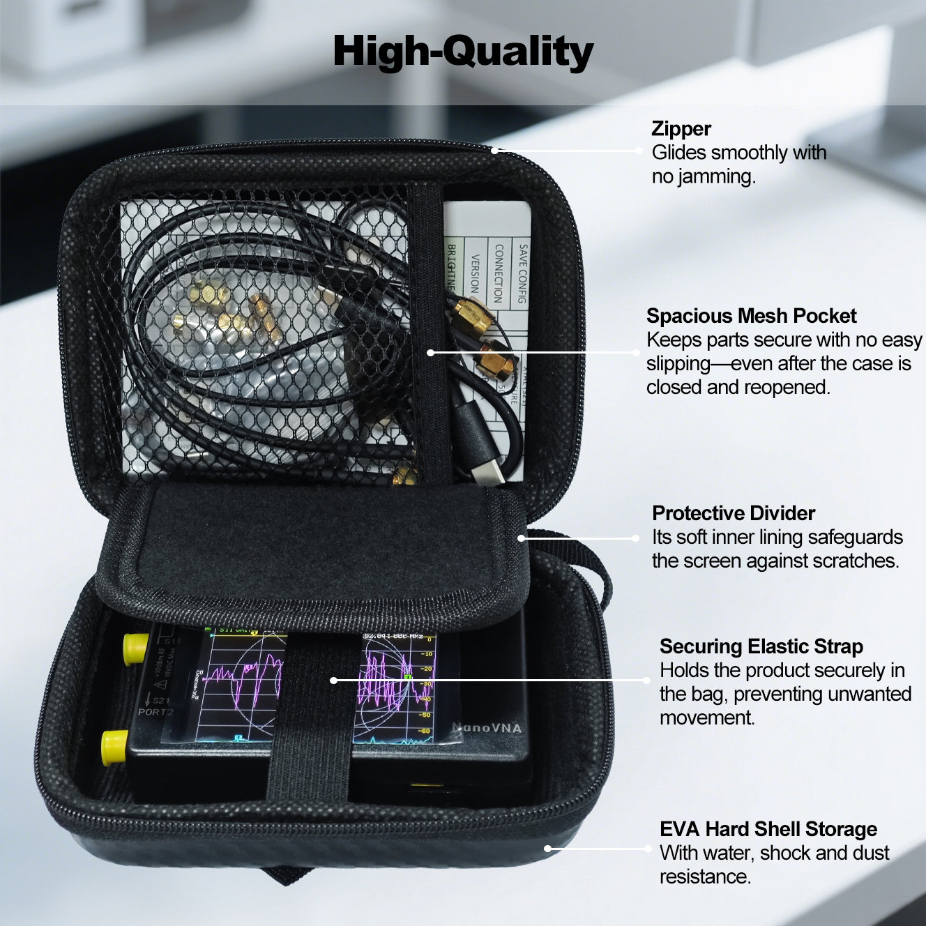 - [Perfect Fit for 2.8 Inch Devices] Exclusively engineered for NanoVNA-H Antenna Analyzer and TinySA Spectrum Analyzer, with a contour-matched foam cradle that locks your device in place. A soft inner lining shields the screen and ports from scratches—no loose shifts during transport