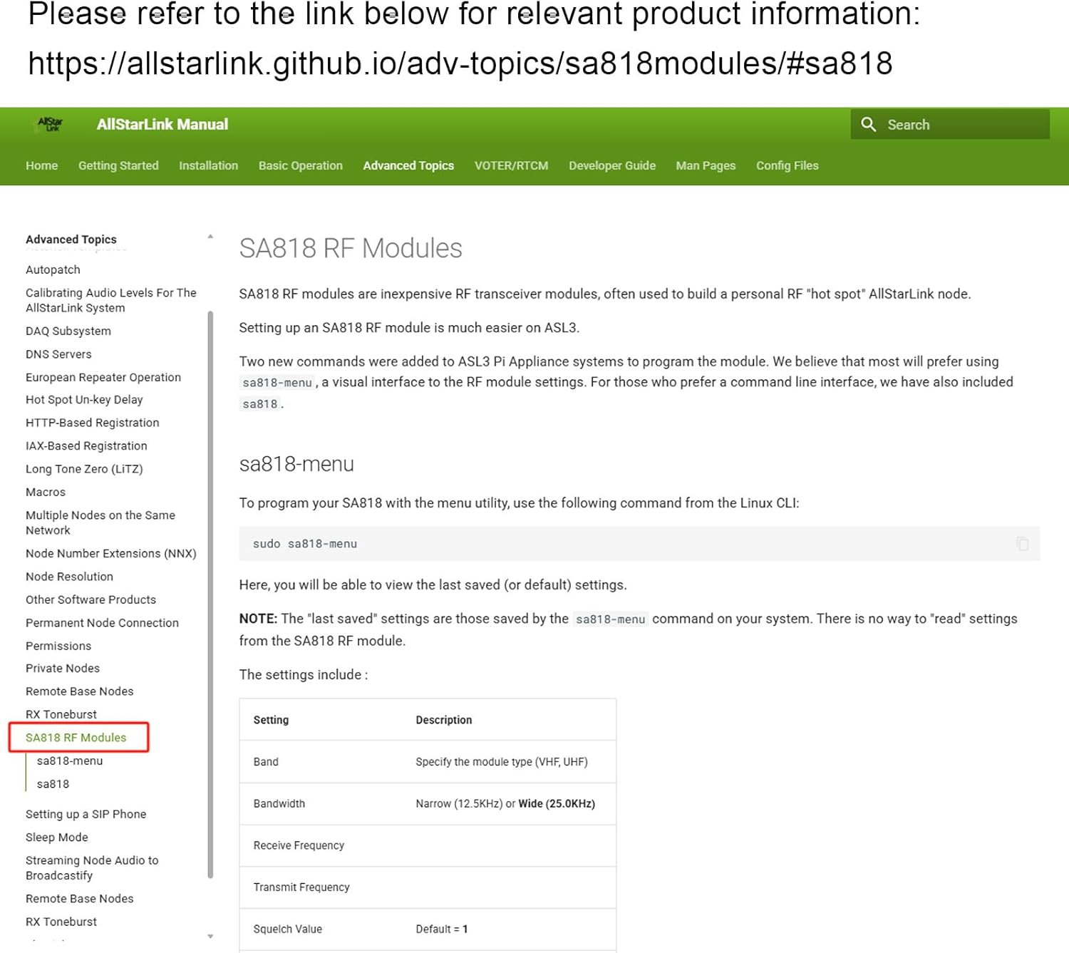 - [Verbesserter Allstar-Knoten] Das AURSINC Allstar-Knoten SR-FRS-Radioprogrammiermodul (Pin-zu-Pin-Ersatz für das SA-818-Modul) ist ein vielseitiger Raspberry-Pi-Hut, der für Allstar, Echolink, APRS oder alle digitalen Modi verwendet werden kann